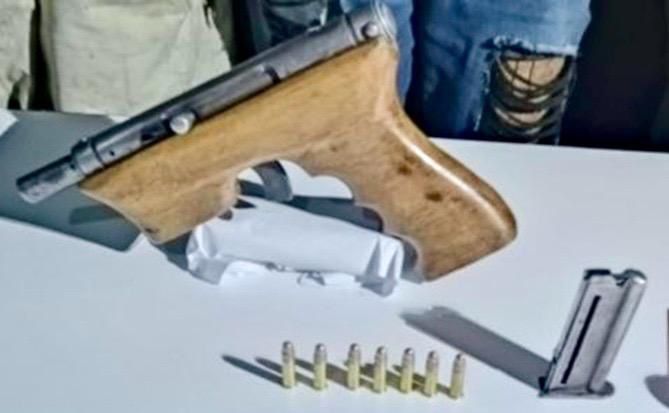 Durante la intervención, los uniformados aseguraron una pistola calibre .22, así como un cargador abastecido con siete cartuchos útiles, lo que confirmó la portación ilegal de arma de fuego sin licencia.
