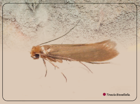 Las orugas Aglossa Cuprealis y Tineola bisellelia intervienen formando parte de alguna de las muchas cuadrillas de trabajadores de la muerte.