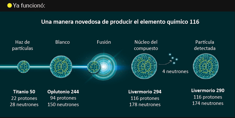 Hace unos días los especialistas lograron crear el Livermorio que tiene 116 protones mostrando el enorme potencial que tiene la nueva tecnología. Consideran que crear el elemento más pesado de todos los tiempos tomará tiempo, quizá tres o seis años, pero la tecnología ya está funcionando.