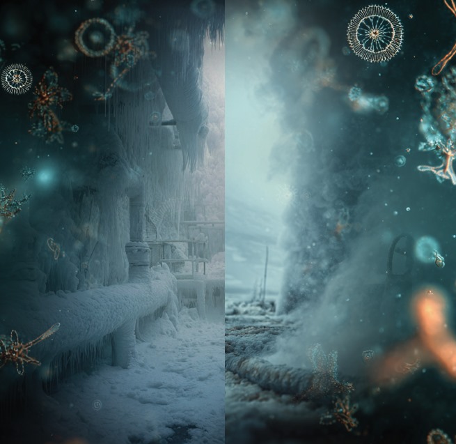 Sin embargo, y aunque las fronteras parecen ser negociables, la vida existe en un territorio con linderos de temperatura, humedad, salinidad, acidez, radiación, oxidación, etc. Definir la vida es, de alguna manera, definir ese vallado de condiciones. Al final, ¿será, quizá, la destrucción misma de los componentes lo que determina qué es posible y qué no? ¿Será lo que disocia a una molécula?, ¿lo que diluye y difumina, lo que funde o paraliza? Se trata de desnaturalización a altas temperaturas o cristalización a bajas, procesos físicos, mecanismos moleculares y atómicos: ¿Es la física en el mundo microscópico lo que determina donde comienza la muerte de un organismo?