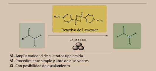 Esquema 1. Síntesis mecanoquímica del segmento de tioamida con el reactivo de Lawesson.