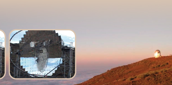 Antes de dejar este breve recorrido por el paisaje de los observatorios localizados en el Roque de los Muchachos, vale la pena mencionar MAGIC I y II (Major Atmospheric Gamma Imaging Cherenkov), experimento patrocinado por Alemania y el más grande de su tipo en el mundo. Se trata de telescopios que captan rayos gamma de ultra alta energía, es decir, es un experimento de astrofísica de partículas en un entorno astronómico. Así, dos enormes antenas parabólicas octagonales, de 17 m de diámetro cada una, contienen espejos segmentados para adaptarse y evitar las aberraciones atmosféricas.