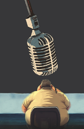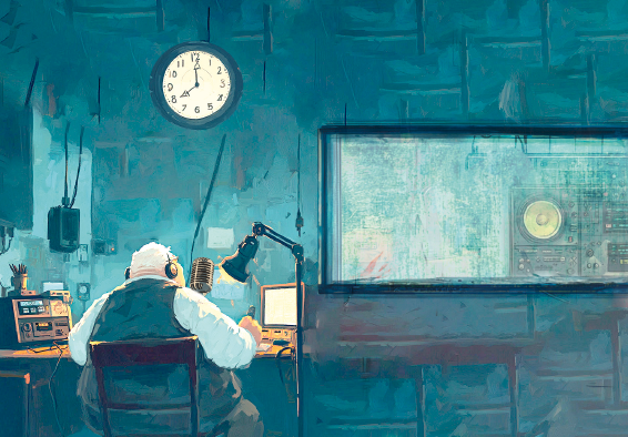 En el estudio, el interlocutor y el técnico se miran entre sí a través del cristal separador. Habían visto protagonistas raros, pero este les gana a todos.