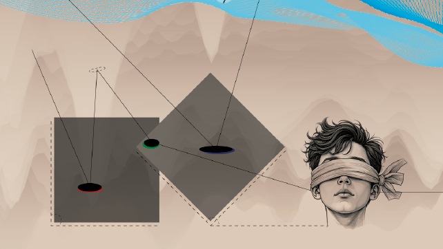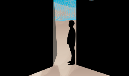 El burlesco, sorprendido, coloca el panel a la derecha, aproximadamente a un metro, y ortogonal a la dirección entre ambos. Pero antes de que el ciego hable, lo gira noventa grados, con lo que el panel no puede reflejar la voz del ciego.