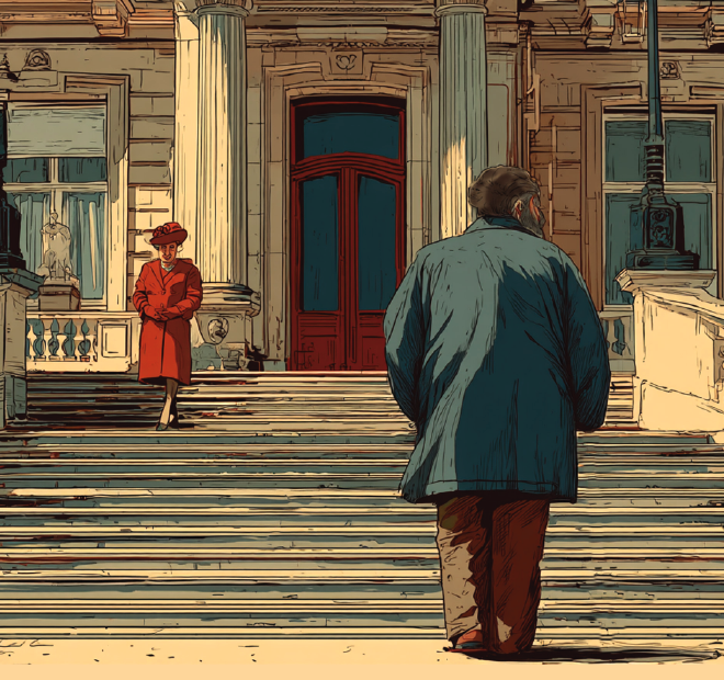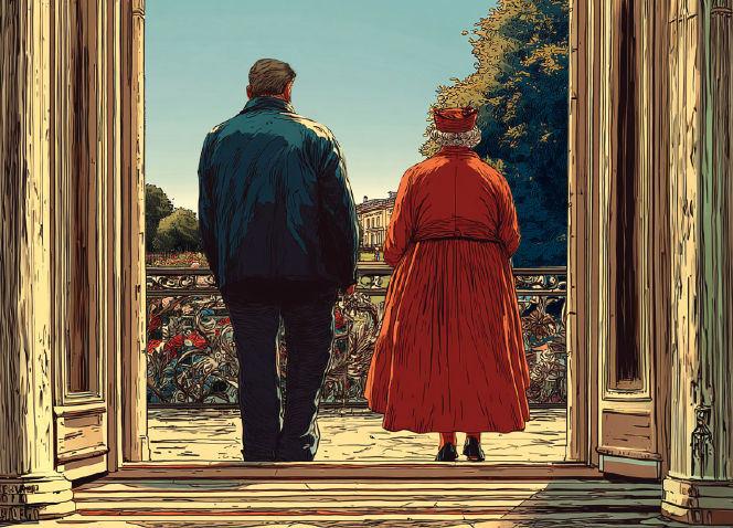 Salgo al balcón y alcanzo a LRM justo cuando llega a la baranda. El público, sorprendido por esta aparición, empieza a lanzar vítores a su reina. Los paparazzi aparecen por arte de magia y empiezan a hacer fotografías, sin conocer la identidad de ese personaje que aparece a su lado. LRM saluda a sus súbditos, y me pregunta: