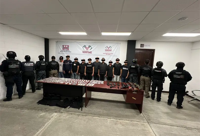 Autoridades federales y estatales desarticularon una célula del Cártel Jalisco Nueva Generación (CJNG) en San Cristóbal de las Casas, Chiapas, donde fueron detenidas 12 personas presuntamente vinculadas a este grupo criminal. El operativo permitió además el aseguramiento de armas largas, equipo táctico, narcóticos y vehículos.