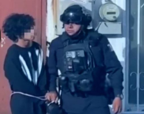 Material difundido en redes sociales muestra el despliegue policial al interior de la escuela, donde elementos de seguridad localizaron al presunto agresor —un joven vestido de negro—, quien fue sometido y trasladado bajo custodia sin oponer resistencia visible.