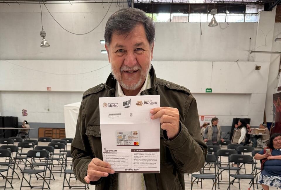 Fernández Noroña presume que recibió su tarjeta para cobrar Pensión del Bienestar
