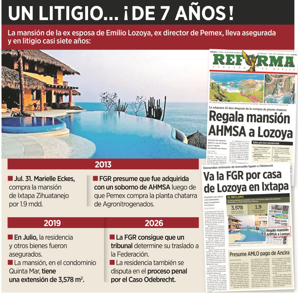 En aquel fallo, la juzgadora sentenció que la Ley de Extinción de Dominio vigente desde 2019 y bajo la que fue requerida la propiedad, no era aplicable porque la FGR fundó su demanda en la carpeta de investigación del Caso Odebrecht, iniciada el 27 de enero de 2017, por el delito de lavado de dinero, mientras que Eckes adquirió la residencia en 2013, cuatro años antes de iniciar la investigación contra Lozoya.