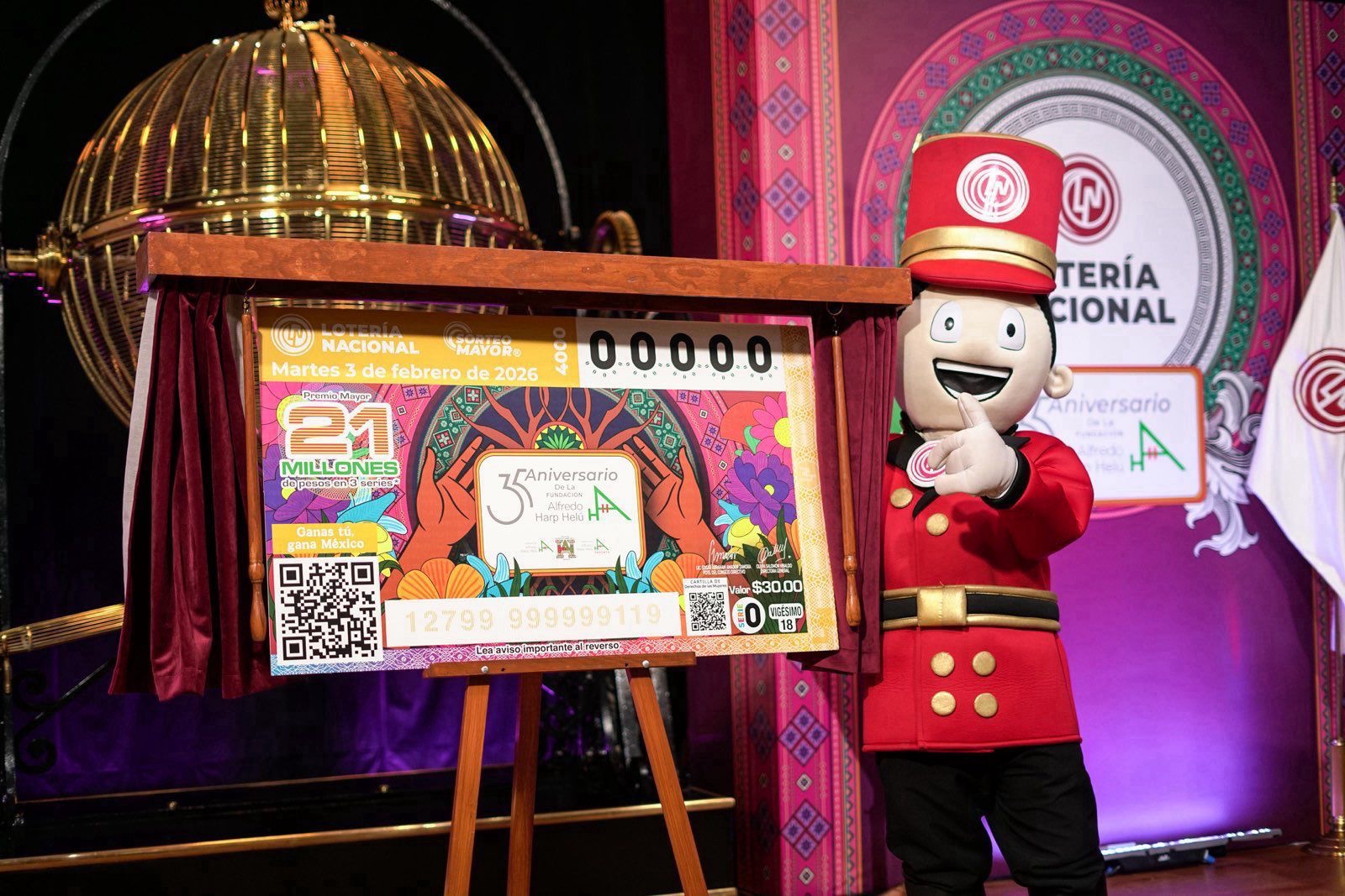 La Lotería Nacional presentó el billete conmemorativo del Sorteo Mayor No. 4000 para reconocer los 35 años de trabajo filantrópico de la Fundación Alfredo Harp Helú, cuyos programas han impactado áreas como cultura, educación, medio ambiente, salud, asistencia social, proyectos productivos y desarrollo deportivo.