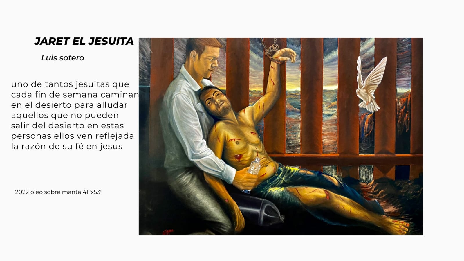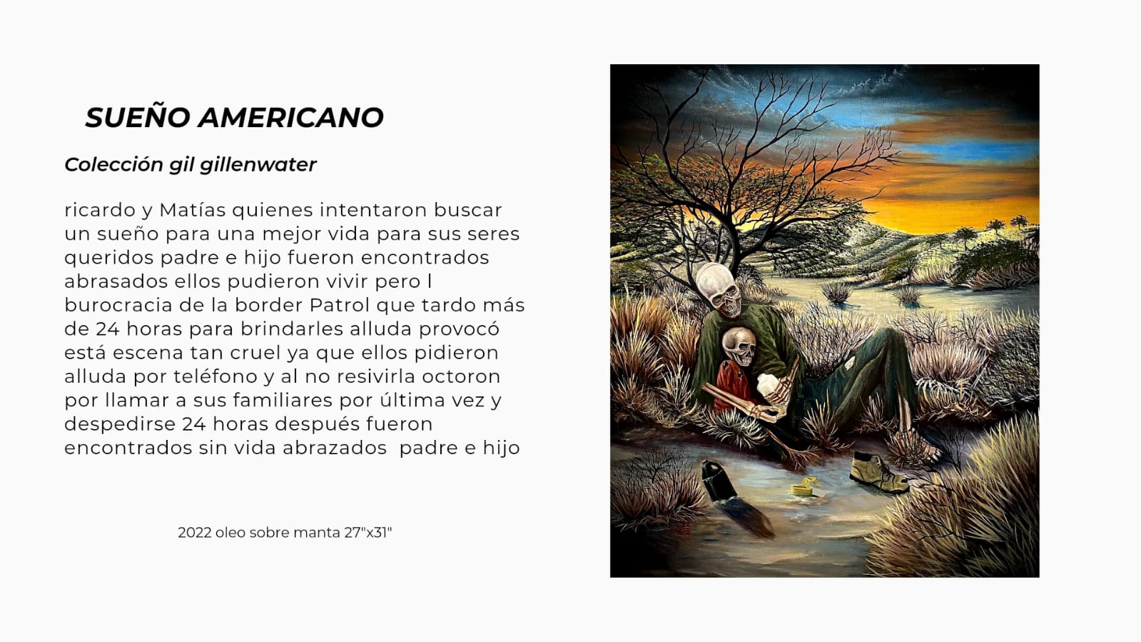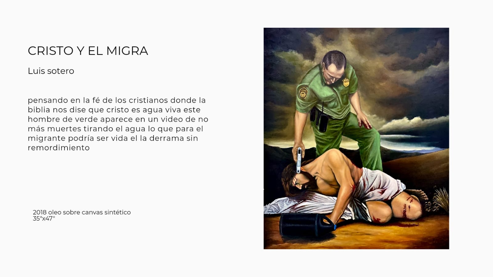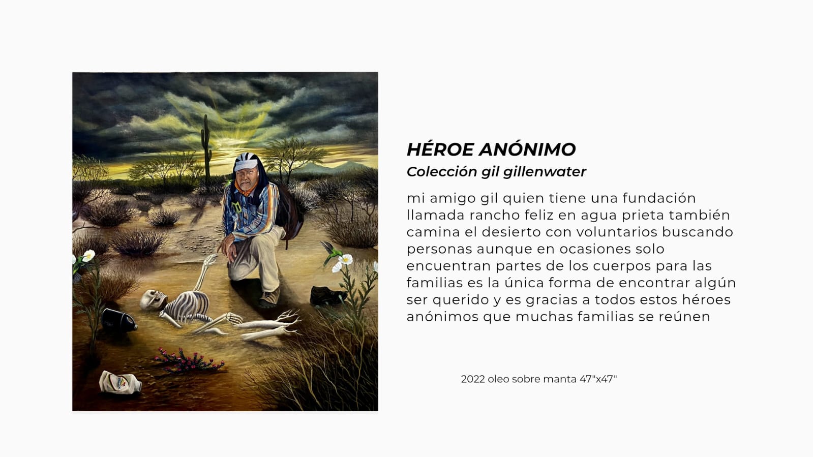 “Pinto para alzar la voz de aquellos sepultados en el desierto. No me considero autodidacta, pero sí un curioso. Por ahí alguien dijo alguna vez que yo era como un Rembrandt de Michoacán, y la curiosidad me llevó a descubrir en YouTube quién era este artista. Luego seguí con Rubens, Artemisia y otros. Pinto con dolor. Cada vez que lo hago me duele, porque revivo en carne propia mis travesías. Mi pintura cuenta la cruda y oscura verdad de la migración”.