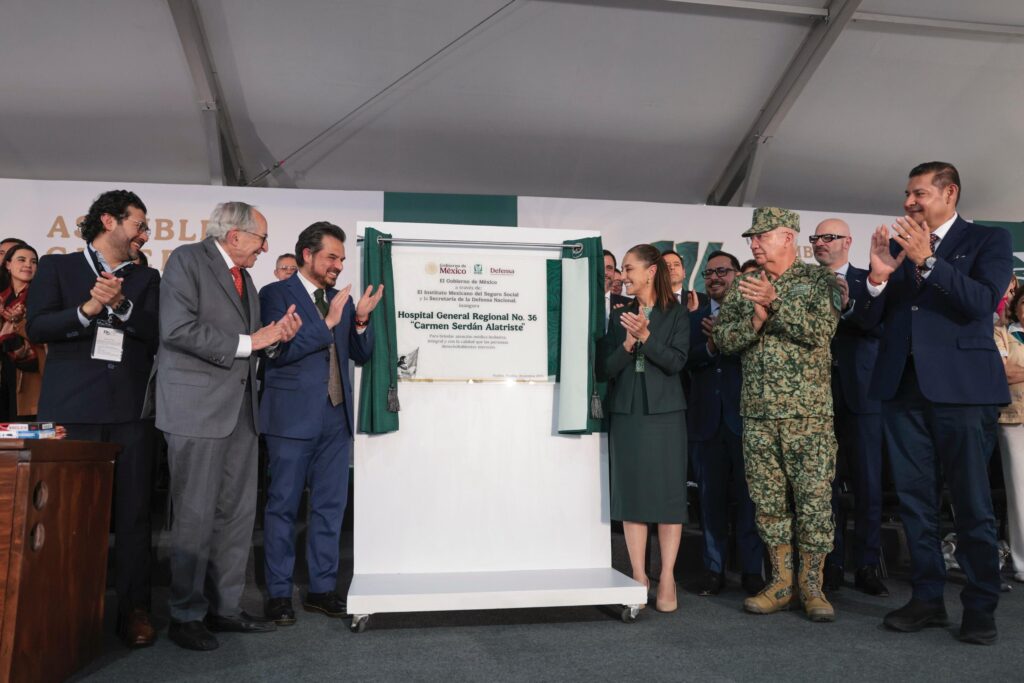La presidenta Claudia Sheinbaum encabezó la reapertura y la develación de la placa que confirma el nuevo título: Hospital General Regional No. 36 “Carmen Serdán Alatriste”.