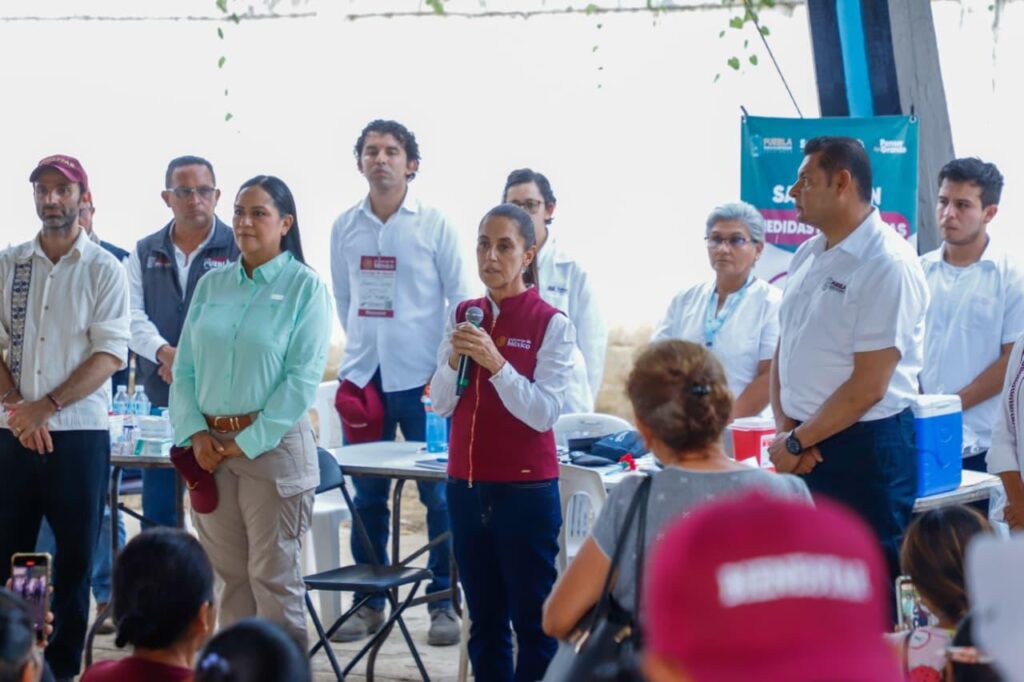 En la comunidad de La Ceiba, municipio de Xicotepec, la mandataria sostuvo una reunión con pobladores y servidores públicos para revisar los avances en la entrega de apoyos económicos y enseres domésticos a las familias damnificadas.