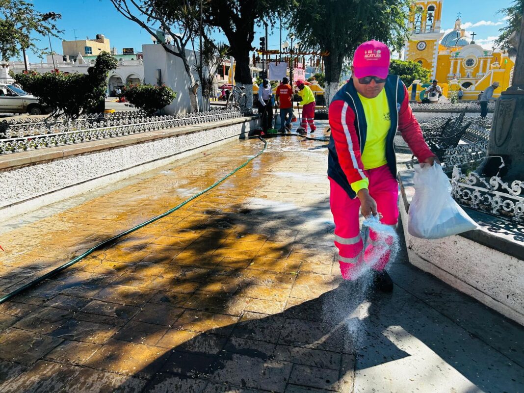 El Gobierno municipal de Acatlán, a cargo de la presidenta Lupita Bárcenas, intensificó las labores de limpieza y mantenimiento en distintos espacios públicos para mantener el municipio limpio y especialmente se dio atención al Zócalo de la ciudad.