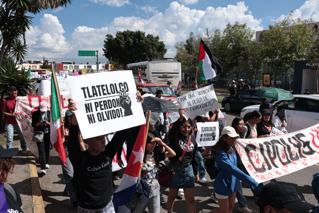 La principal consigna de la marcha fue rememorar el asesinato de estudiantes de la UNAM y el IPN, perpetrado el 2 de octubre de 1968 en la Plaza de las Tres Culturas en Tlatelolco.