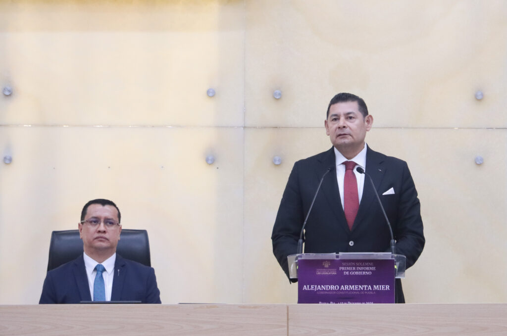 En sesión solemne del Congreso del Estado, el gobernador Alejandro Armenta entregó su primer informe de gobierno, en el que afirmó que su administración mantiene respeto a la división de poderes y expuso los principales resultados del primer año de gestión.