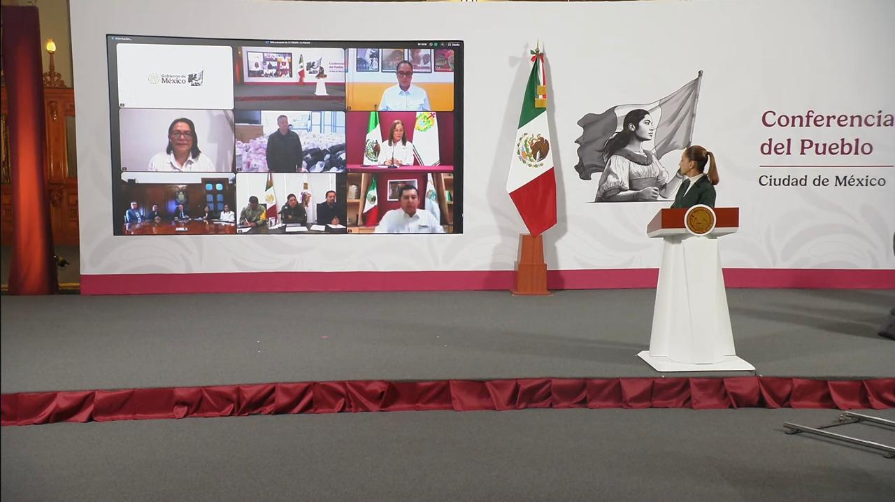 La presidenta Claudia Sheinbaum encabezó un enlace remoto con los gobernadores de Veracruz, Puebla, Hidalgo, Querétaro y San Luis Potosí, destacando el avance del Plan DN-III-E y reafirmando su compromiso con la reconstrucción basada en la paz, la solidaridad y el trabajo conjunto entre federación, estados y municipios.