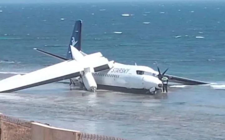 Un avión de la aerolínea StarSky Airline protagonizó un accidente aéreo este martes en Mogadiscio, Somalia, luego de salirse de la pista y terminar en una playa cercana al Aeropuerto Internacional Aden Adde, sin que se reportaran víctimas fatales.