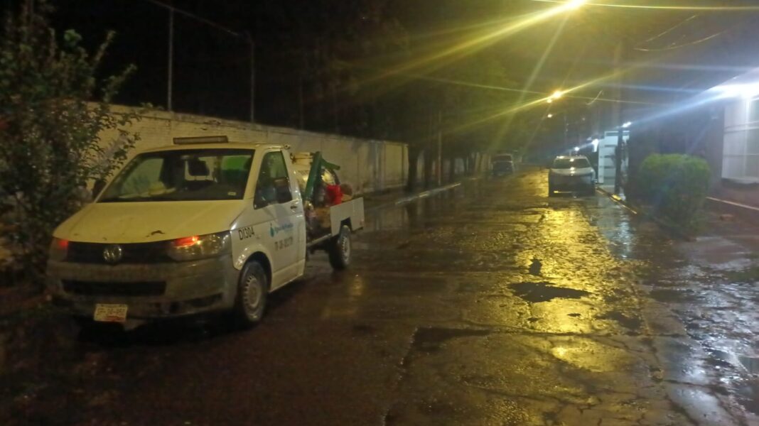 En cumplimiento del protocolo de atención a contingencias pluviales, se desplegaron tres cuadrillas operativas y una unidad hidroneumática, atendiendo 12 puntos estratégicos previamente identificados como prioritarios.