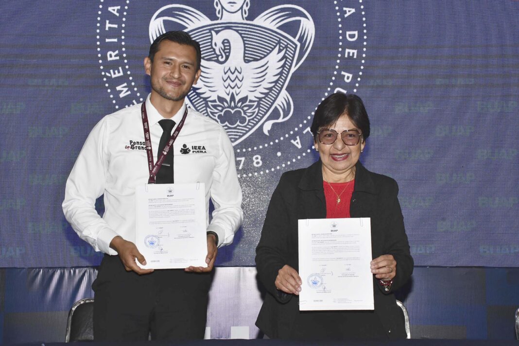 Durante el evento, se firmó un convenio de colaboración con el Instituto Estatal de Educación para los Adultos (IEEA), a través del cual estudiantes de la BUAP participarán en acciones de alfabetización y combate al rezago educativo en comunidades vulnerables.