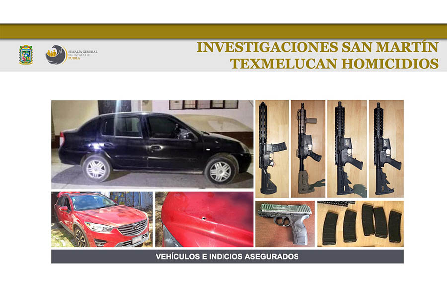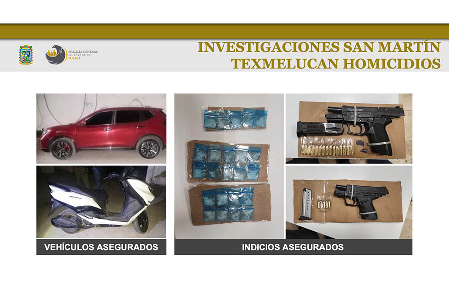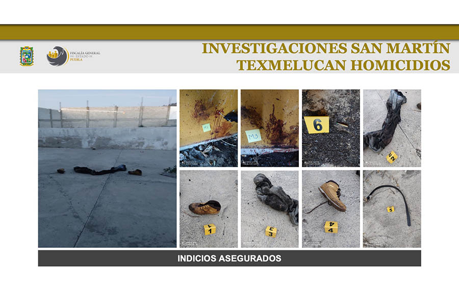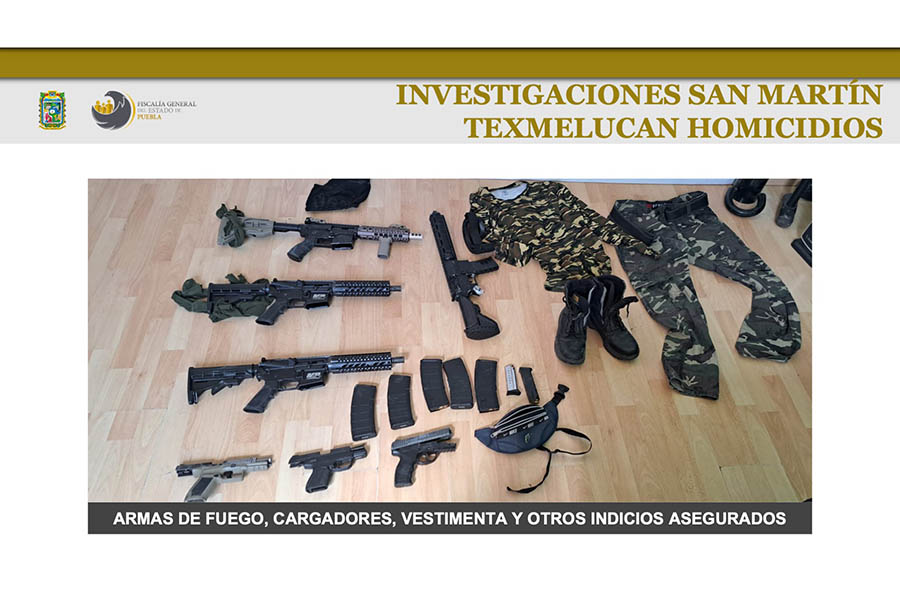 Las labores para esclarecer los hechos ilícitos en San Martín Texmelucan, derivaron en cateos a cuatro inmuebles, donde fueron asegurados cartuchos percutidos, un artefacto explosivo, dos vehículos, diversas prendas de vestir tipo camuflaje, ropa presuntamente perteneciente a un hombre privado de la vida y diversos rastros hemáticos.