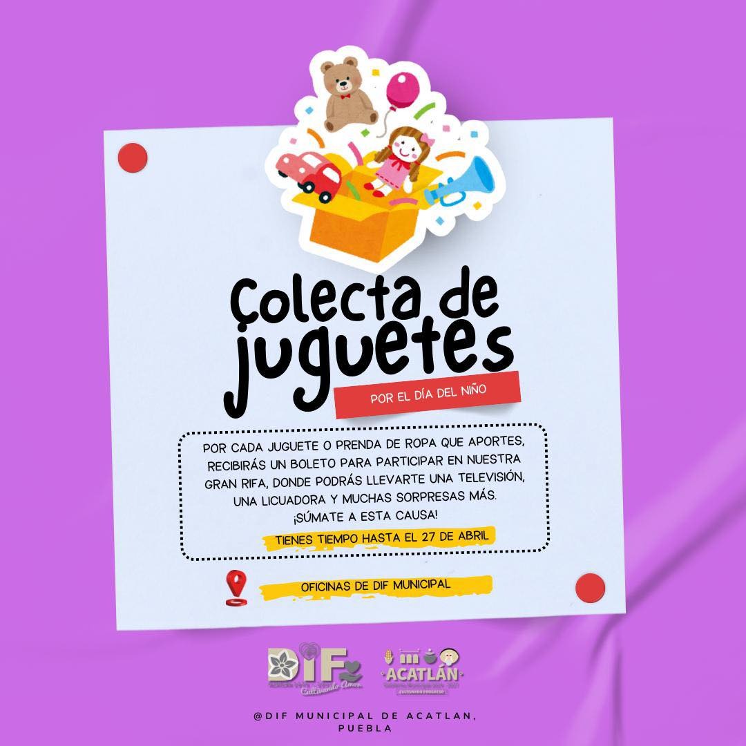 Las autoridades municipales hicieron un llamado a la población a integrarse a la colecta del Día del Niño, destacando que este tipo de acciones permiten generar un impacto positivo y garantizar que la niñez de Acatlán celebre esta fecha especial con una sonrisa.