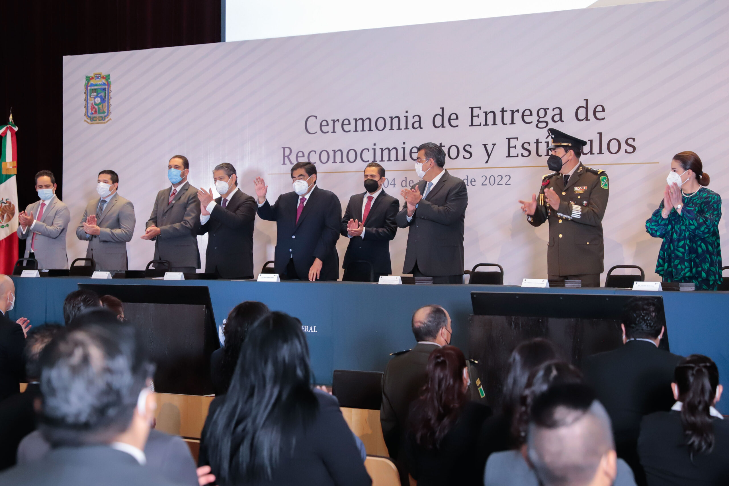 Al encabezar la ceremonia de entrega de reconocimientos y estímulos de la FGE, el mandatario dijo que es una obligación del Poder Ejecutivo apoyar al fortalecimiento de las actividades de quienes laboran en esa institución, una de las mejores fiscalías del país por su altísimo nivel de eficiencia.