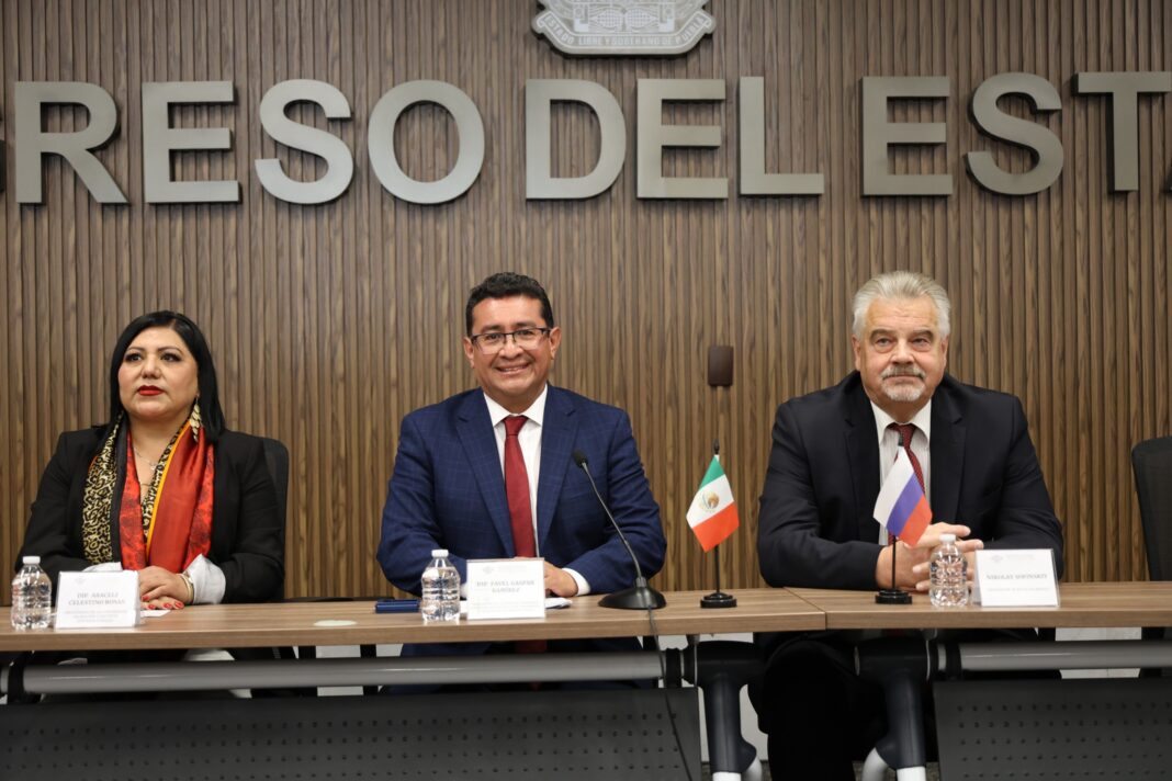 El Congreso del Estado de Puebla conmemoró los 135 años de relaciones diplomáticas ininterrumpidas entre México y Rusia, en un acto encabezado por el diputado Pavel Gaspar Ramírez, presidente de la Junta de Gobierno y Coordinación Política, quien recibió al embajador de la Federación de Rusia en México, Nikolay Sofinskiy, para refrendar los lazos históricos de cooperación entre ambas naciones.