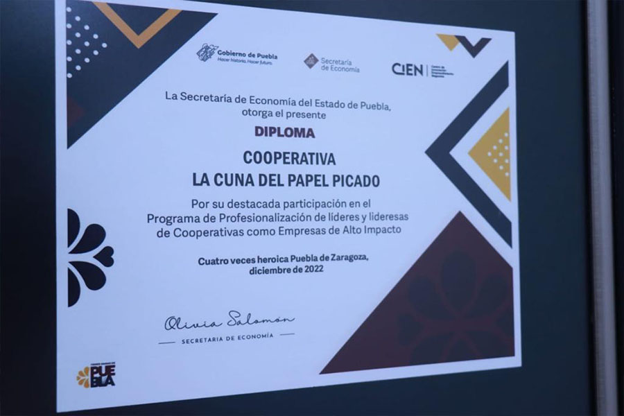 Lo anterior, después de inaugurar la tienda de la cooperativa La cuna del papel picado en el municipio de San Salvador Huixcolotla, donde se venden productos de artesanos de la región, dedicados a este arte y que es resultado del programa de Profesionalización de Cooperativas.