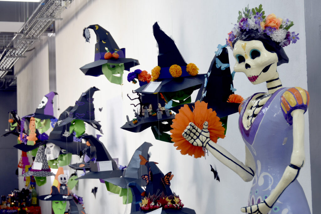 Uno de los montajes más llamativos fue “Hechizos geométricos”, creación de estudiantes de Diseño Gráfico, que combinó elementos visuales y simbólicos para rendir homenaje a la muerte desde una perspectiva creativa y contemporánea.