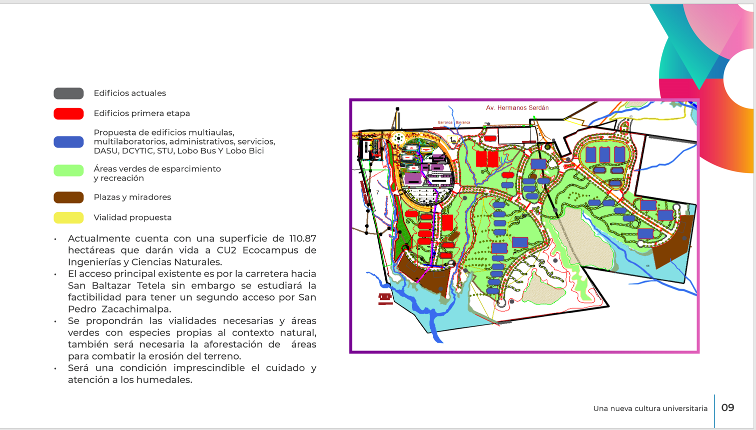 Lo anterior en respuesta a la alta concentración de población escolar en la actual Ciudad Universitaria que se ubica en la colonia San Manuel, cuya población estudiantil asciende a más de 56 mil estudiantes y 4 mil trabajadores, aunado a la falta de una reserva territorial en dicho lugar, lo que limita la expansión de la institución.