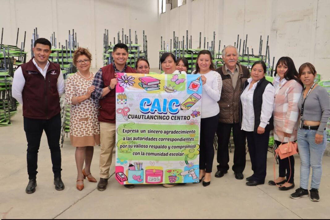 Subrayó que gracias a este trabajo conjunto se entregaron 1,235 sillas, 618 mesas, 39 libreros y 39 pizarrones, beneficiando a 975 alumnas y alumnos de 12 CAICs, fortaleciendo los espacios de aprendizaje y cuidado infantil.