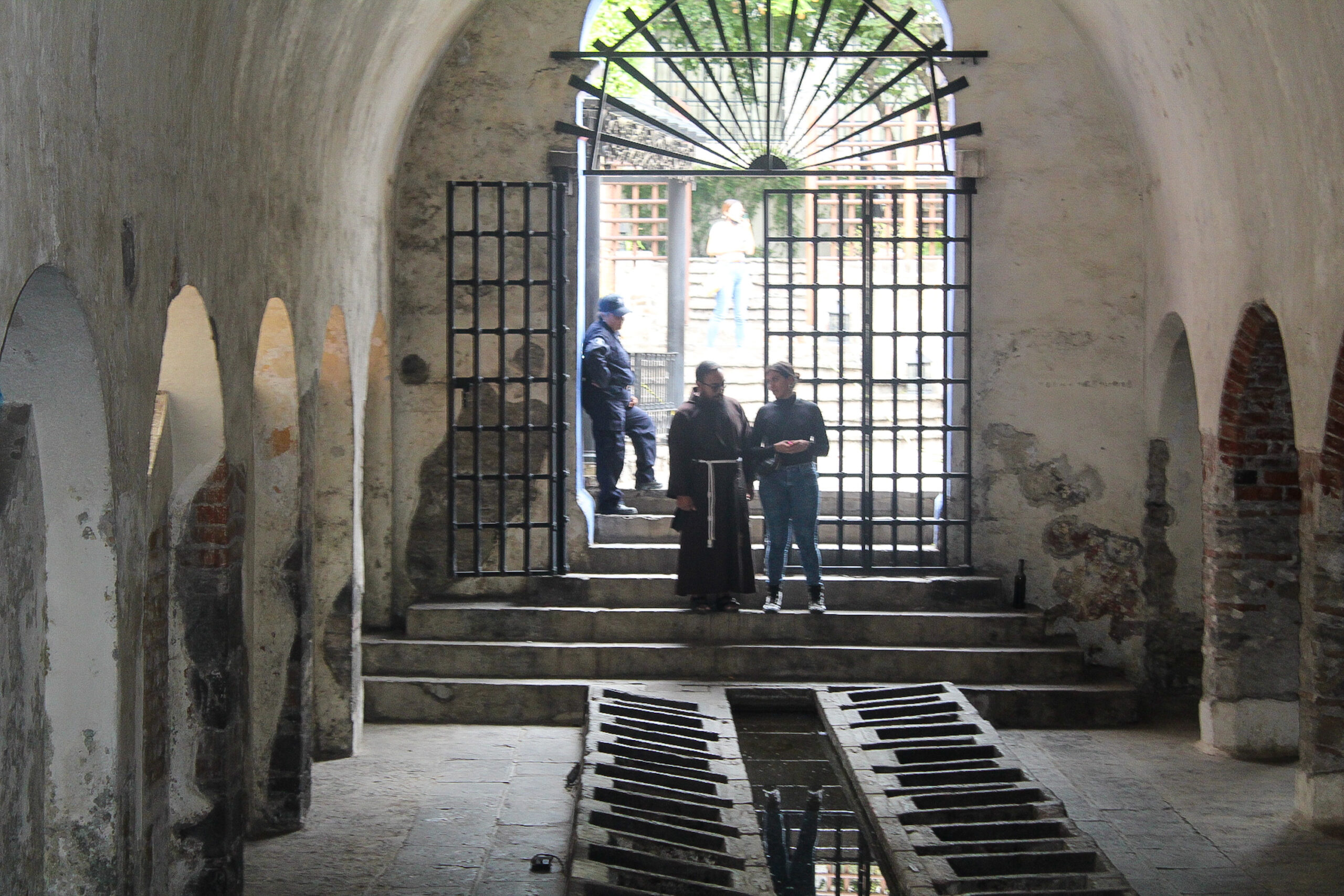 Los canales de desagüe también sufrieron alteraciones, puesto que fueron rebajados para permitir el paso peatonal, ya que eran utilizados por la hospedería como un acceso al Jardín de Las Trinitarias; sin embargo, las constantes vibraciones de los vehículos que circulan por la zona provocaron o que dichos túneles se encontraran en potencial riesgo de colapso.