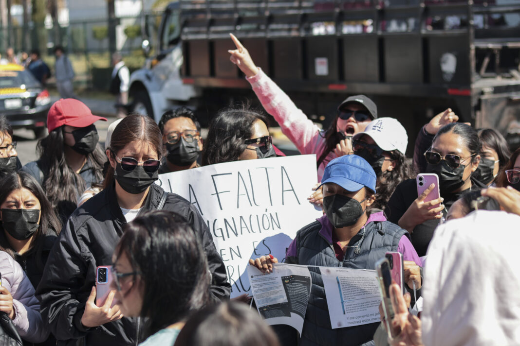 La exigencia de una asignación de plazas equitativa llevó a decenas de docentes a manifestarse este jueves frente a la sede de la SEP Puebla, cuya movilización provocó el bloqueo de la calle Jesús Reyes Heroles y obligó al despliegue de elementos de seguridad para resguardar el edificio.