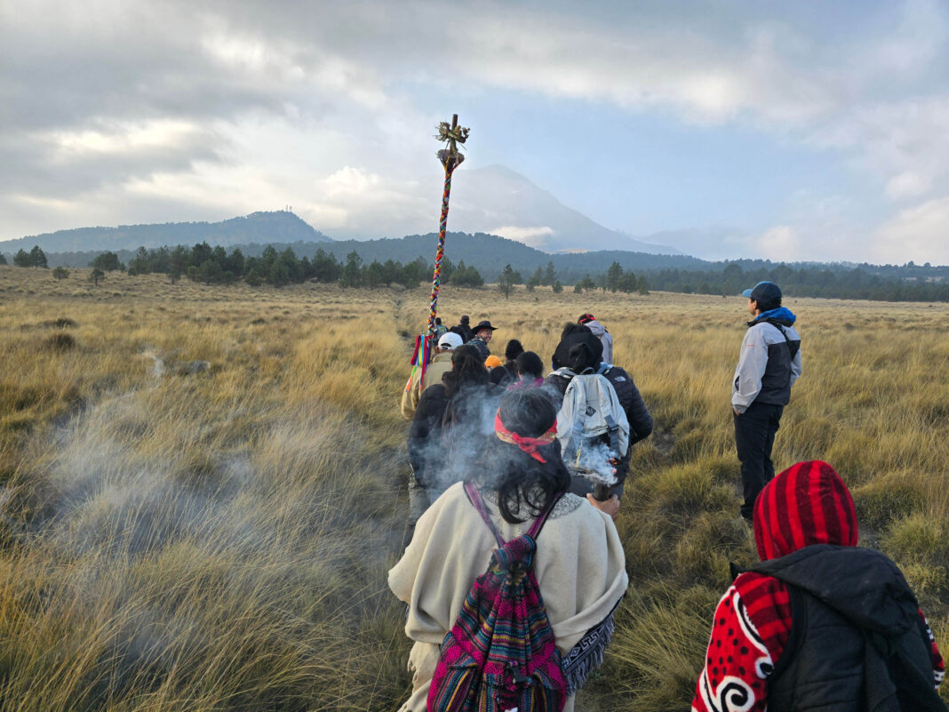 Desde las primeras horas, los pobladores de la comunidad más cercana al cráter del volcán se reunieron en la plaza principal para acompañar a Antonio Analco Sevilla, el tempero mayor, quien afirma tener el don de comunicarse con el espíritu de Gregorio Chino Popocatépetl, como ahora se representa físicamente el antiguo guerrero mexica que juró velar el sueño eterno de su enamorada Iztaccíhuatl, también conocida en esta región del país como la “mujer dormida”.