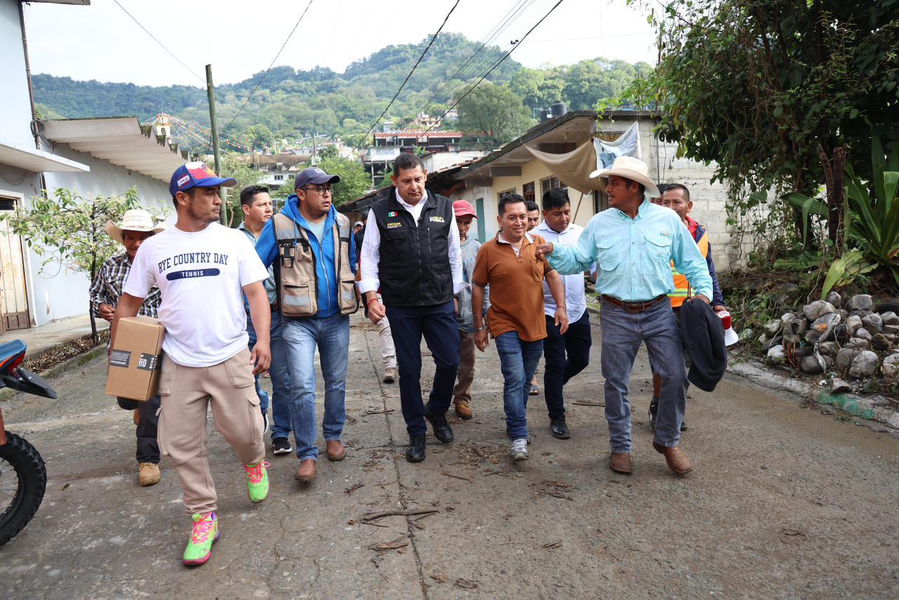 El gobernador Alejandro Armenta realizó este jueves un recorrido y reunión de trabajo con habitantes de Chicontla, en el municipio de Jopala, tras las afectaciones provocadas por el desbordamiento del arroyo Chicontla derivado del frente frío número 16.