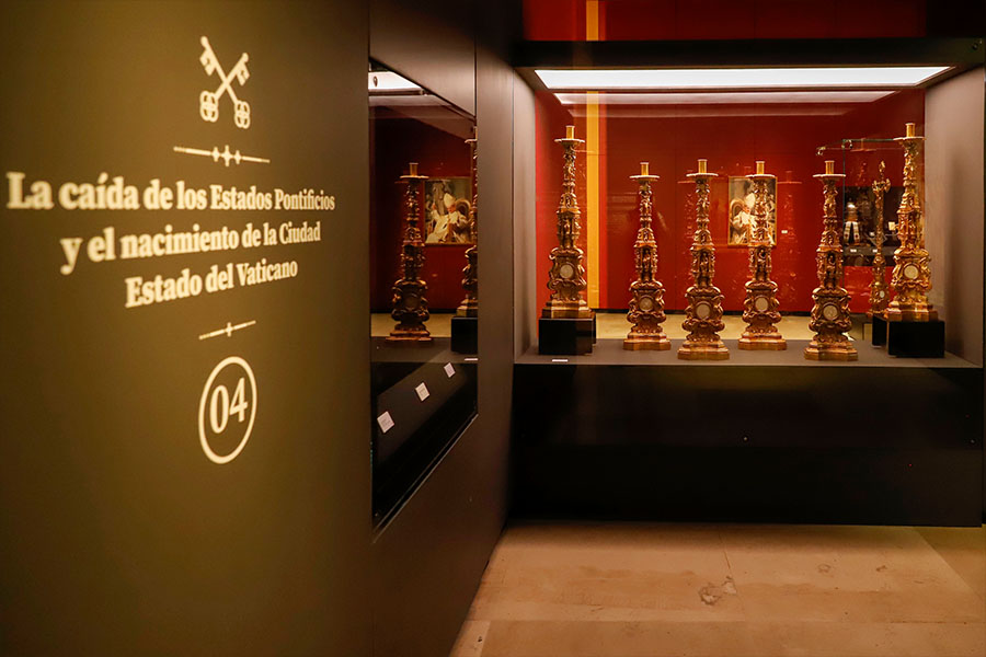 La exhibición está en las salas seis, siete y ocho del Museo Internacional del Barroco. También, cuenta con diversas indumentarias eclesiásticas como la Capa pluvial y Casullas; monedas conmemorativas del papado en turno; relicarios de San Juan Bautista (1825); del brazo de Santa Elena (1820), Llaves ceremoniales de la Basílica Lateranense (datada aproximadamente en el año 1590), así como recursos museográficos ubicados en dos audiovisuales: uno de ellos aborda una recreación sobre el primer Papa San Pedro, y la segunda es una entrevista del embajador de México ante la Santa Sede, Alberto Barranco Chavarria.