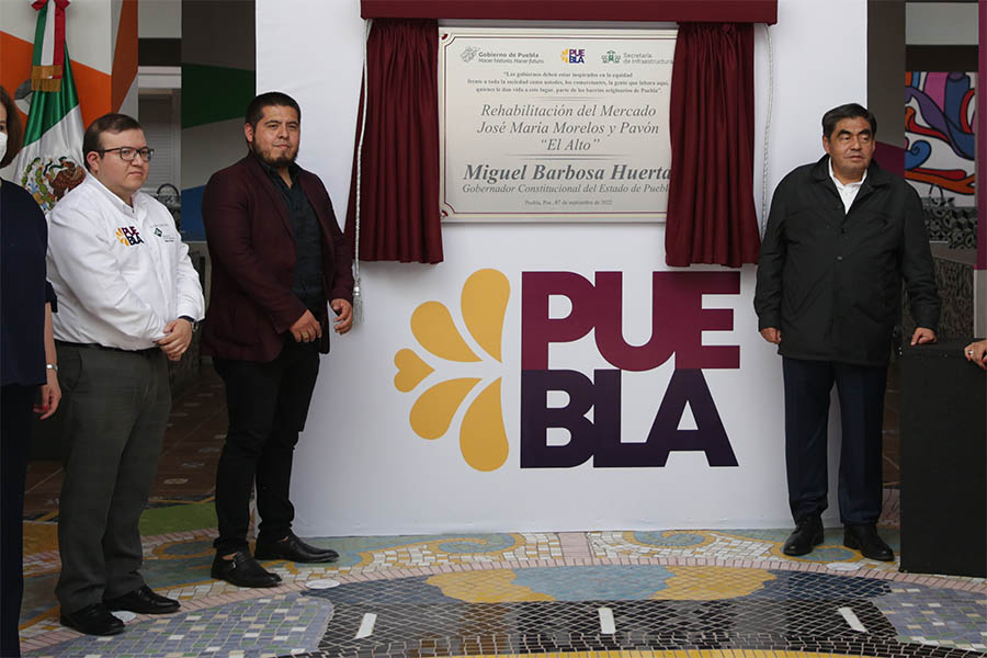 Durante la reapertura, que tuvo como fondo la emblemática fachada del mercado, el mandatario estuvo acompañado por su esposa, Rosario Orozco Caballero; de la secretaria de Gobernación estatal, Ana Lucía Hill Mayoral; de Luis Roberto Tenorio, secretario de Infraestructura, y de Raúl Roberto Méndez Castillo, vecino del Barrio de El Alto.