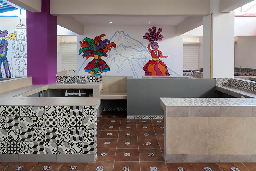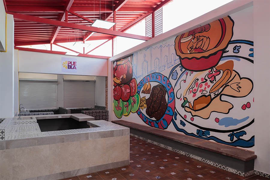 Se intervino la estructura del inmueble, se realizaron trabajos de albañilería, instalación hidrosanitaria, acabados, cancelería, instalación eléctrica e instalación de gas para los locales donde venden comida típica poblana.