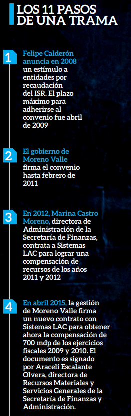Si bien al destapar este caso la semana pasada se mencionó sobre una devolución de recursos al SAT, en realidad el morenovallismo engañó al SAT para obtener una compensación indebida para lo cual contrató a Sistemas LAC, la cual cobró por sus servicios alrededor de 360 millones de pesos.
