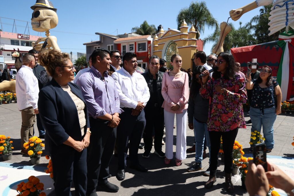 Posteriormente, las autoridades y asistentes se dirigieron a la Casa del Campesino, acompañados por los integrantes de la Danza de los Diablitos del Instituto Jaime Torres Bodet, para visitar la ofrenda monumental y la muestra artística Intervención de cráneos.