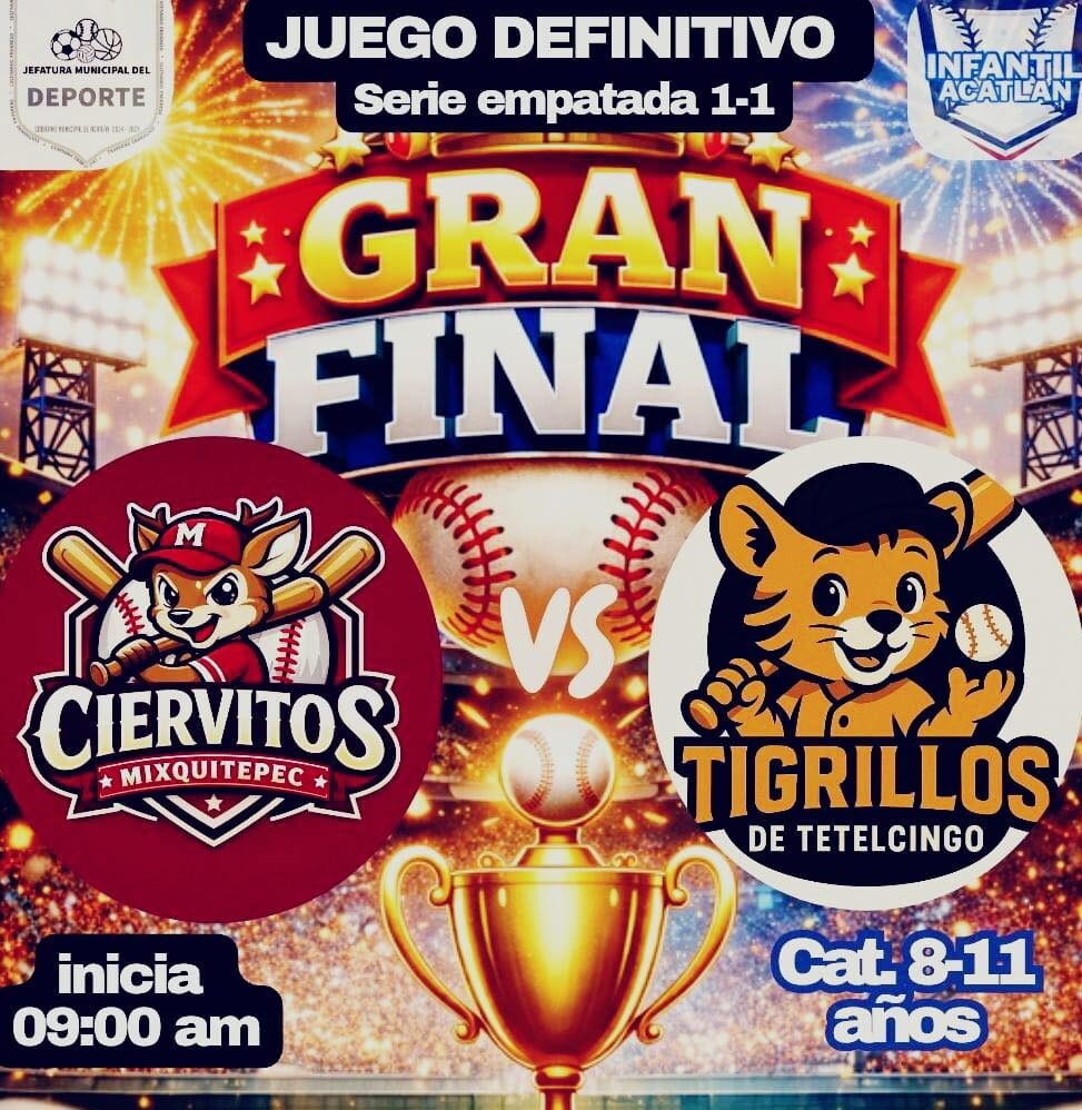 Con el objetivo de fomentar el deporte infantil, fortalecer el tejido social y promover el desarrollo integral de la niñez, el Gobierno Municipal de Acatlán impulsa la Gran Final de la Liga Infantil de Béisbol, que se llevará a cabo este sábado 28 de febrero.