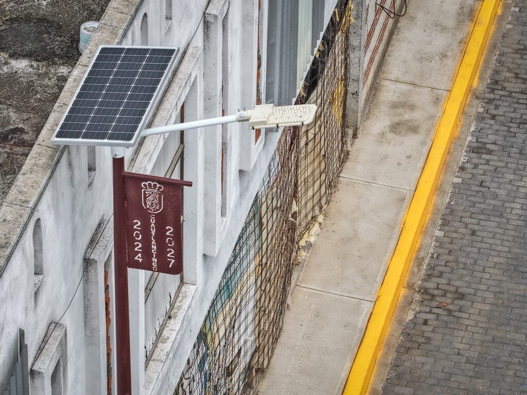 Instalación de luminarias solares, promoviendo eficiencia energética.