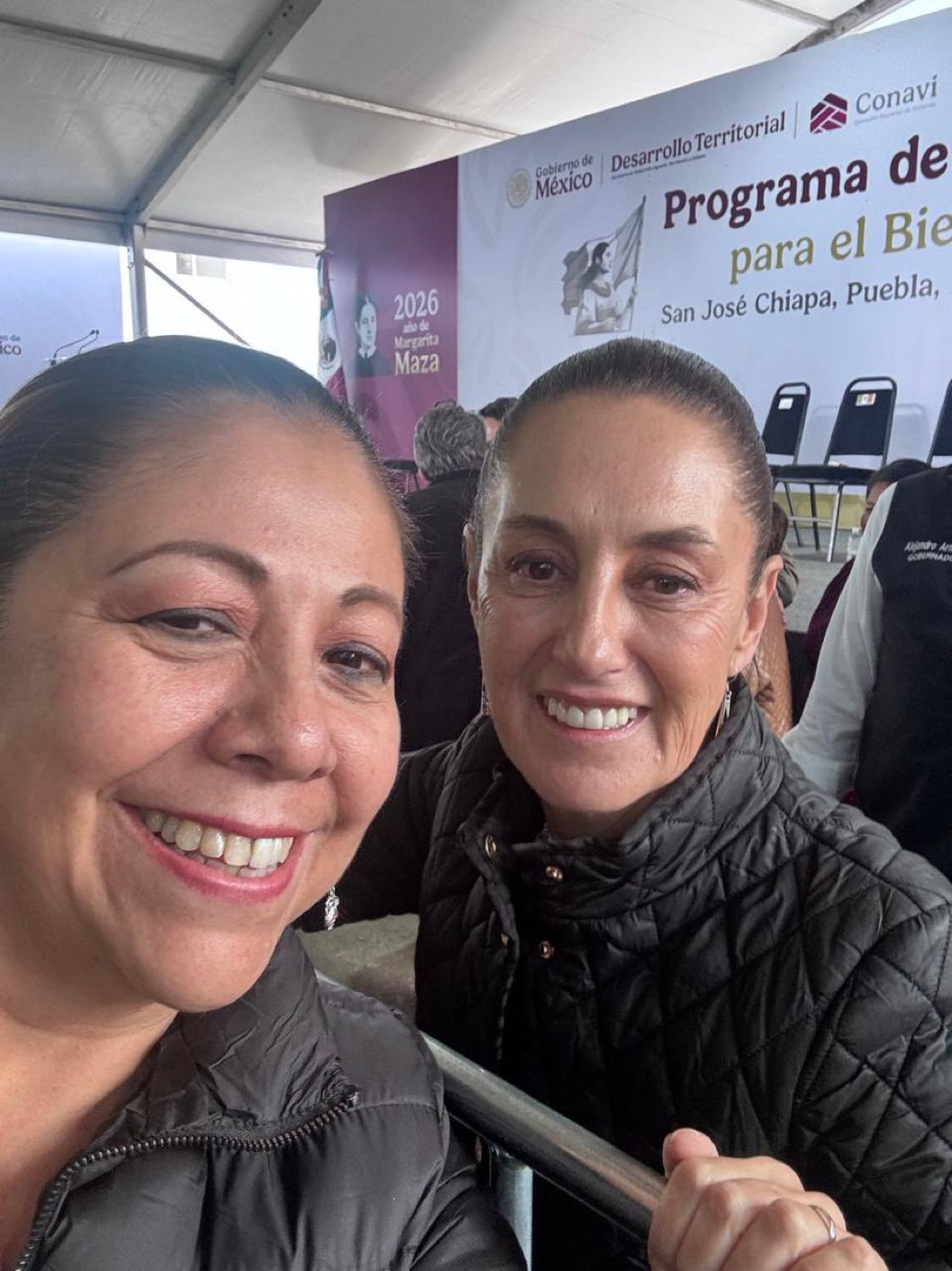 A través de sus redes sociales, la funcionaria destacó que fue un orgullo saludar a la mandataria federal, quien encabezó la entrega de viviendas en el municipio de San José Chiapa.