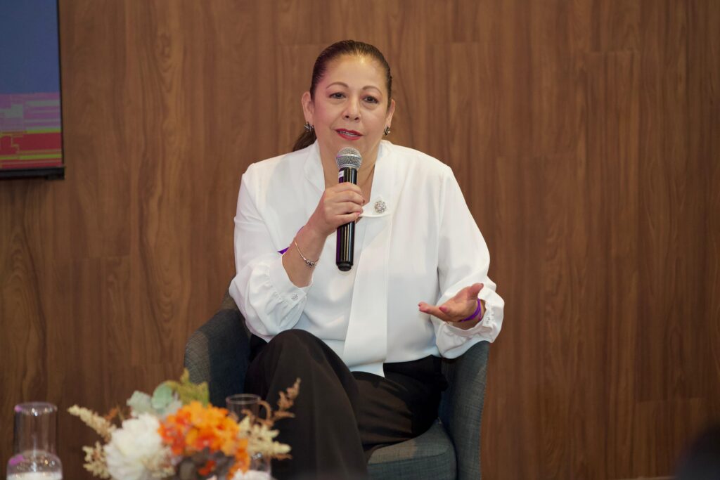 La secretaria de Bienestar, Laura Artemisa García, exhortó a romper barreras entre mujeres y fortalecer el liderazgo femenino, durante el Panel Vértice “En honor a las mujeres líderes”, realizado en la Universidad Anáhuac.