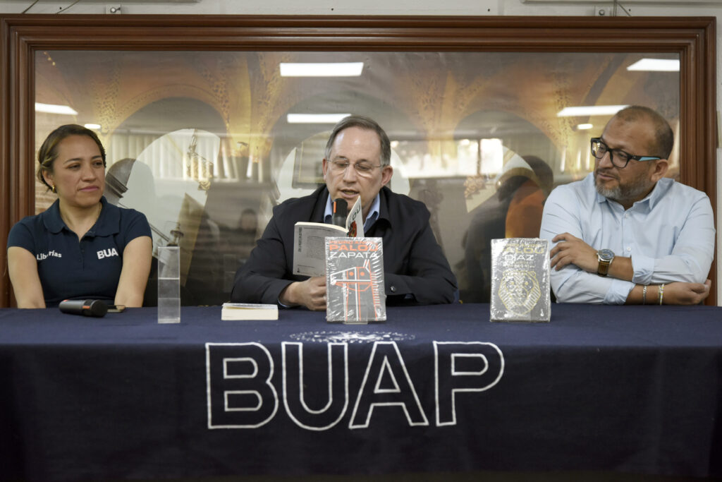 Durante la charla, el autor recordó su etapa como alumno de la Licenciatura en Lingüística y Literatura Hispánica de la Benemérita Universidad Autónoma de Puebla (BUAP), además de relatar su incursión en la escritura y su trayectoria en distintos géneros, desde la poesía hasta la novela histórica.