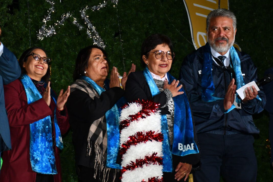 Durante el encendido del árbol navideño del Complejo Cultural Universitario (CCU), la rectora de la máxima casa de estudios en la entidad expresó su deseo de que la comunidad estudiantil tenga unas felices fiestas decembrinas.