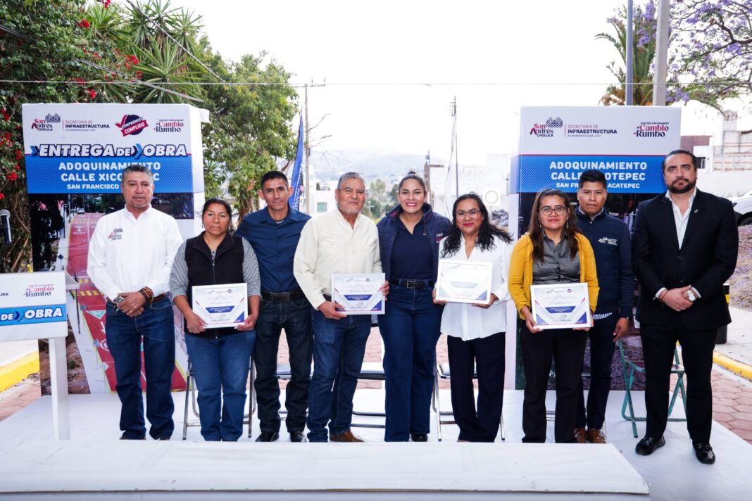 Como parte de una estrategia para fortalecer la infraestructura urbana y mejorar la calidad de vida, la presidenta municipal Lupita Cuautle encabezó la entrega de la obra de adoquinamiento en la calle Xicotepec de Juárez, ubicada en San Francisco Acatepec.