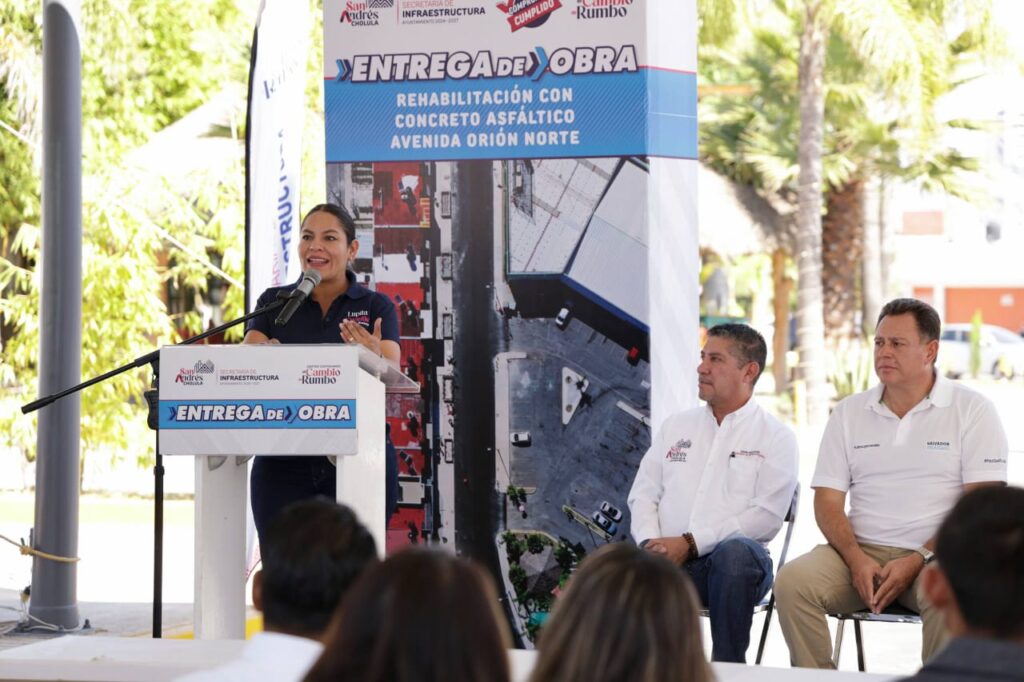Durante el acto, la edil destacó que esta intervención fue prioritaria para mejorar la movilidad y la calidad de vida de las familias sanandreseñas, al ofrecer una vialidad más funcional y acorde a las necesidades de las personas que la transitan diariamente.