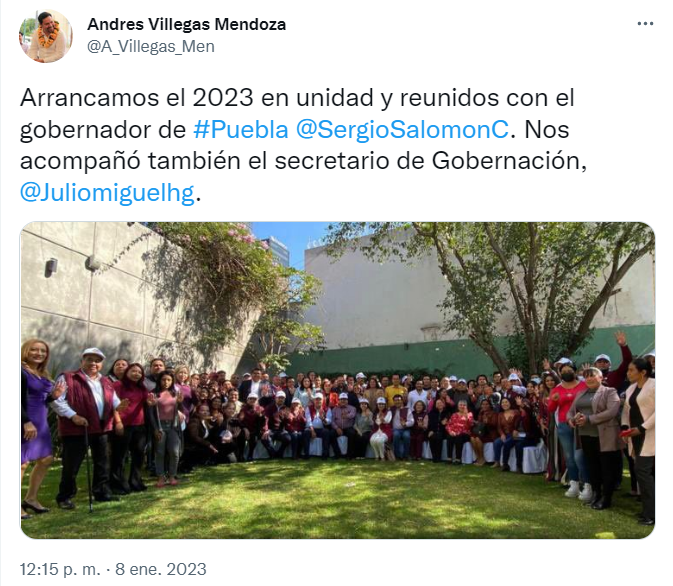 “Un gusto saludar a la presidenta de @MorenaEnPuebla, @OlgaRomeroGC, integrantes del Comité Directivo Estatal, así como a compañeras y compañeros consejeros de nuestro partido”, escribió en su cuenta de Twitter.